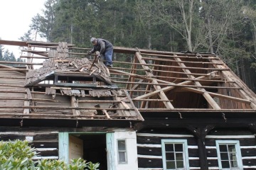 Mnoho objektů má díky péči, často několikáté generace místních chalupářů, původní vzezření a kolemjdoucí tak mohou vidět zdejší architekturu v plné kráse. Některé domy mají své osudy pohnutější a i dnes se „obracejí v prach“. Ne však stavení čp. 54, které patřilo k jedněm z nejstarších. Po jeho prodeji se ukázalo, že má být roubenka stržena a tak se místo remcání u piva místní domluvili na záchraně. „V první fázi byl dům odborně rozebrán a zachovalé části uloženy pro pozdější využití. Po získání potřebných financí bude dům znovu postaven a bude sloužit jako ukázka typické venkovské architektury regionální osvětě,“ jak informuje spolek Náš Kopec na svém webu. První fáze, o které se zmiňují, proběhla již v roce 2017 a dodnes se velmi aktivně a nápaditě sbírají peníze na jeho nové postavení u vstupu do Národního parku.