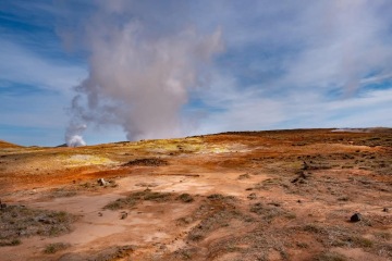 Ráno bylo nečekaně deštivé, ale plán nepočká, a tak jsme se vypravili k jednomu z nejznámějších míst Islandu, ke gejzíru Strokkur. Rozkládá se v blízkosti Geysiru s velkým “G”, který dal jméno všem těmto přírodním jevům v geotermální oblasti kolem řeky Hvitá. Je aktivní přibližně každých 15 minut a horkou vodu chrlí až do výše 20 metrů. Nedaleký Geysir to uměl ještě výš, ale lidé ho svou činností, kdy chtěli lepší zážitky a lili do něj mýdlo a jiné, utlumily a nyní není skoro aktivní. Projít se dá volně celou oblastí, kde malých vřídel a bublajících pramínků je nespočet. Cesta následně pokračuje podle zmíněné řeky k jednomu z nejkrásnějších vodopádů. Gullfoss, neboli Zlatý vodopád se nalézá v horní části řeky Hvítá a padá kaskádovitě dolů ve dvou fázích. Napřed 11 metrů a pak 22 metrů, obě fáze ústí do 2,5 km dlouhého kaňonu. Dechberoucí pohled a všude přítomná drobná vodní mlha. Ta nám ovšem vzhledem k mrholení nedělala žádné vrásky. Velké infocentrum, restaurace a obchod se suvenýry u vodopádů skýtá možnost odložit obytné auto a opět jen v tereňáku vyrazit do vnitrozemí. Stále po silnici 35 do Hveravellir. Nádherný opuštěný kemp s termálním bazénkem a malým občerstvením. Zároveň místo odkud vychází cesty na malé i větší túry. My ovšem zvolili jen krátkou vycházku a pak relaxovali v nádherně teplé a léčivé vodě. Výhodou je minimální množství lidi. V nedalekém prameni, který dosahoval skoro bodu varu jsme, i přes varování o horkosti vody, uvařili v kotlíku vejce a měli až dětinskou radost, že pokus vyšel. Tentokrát jsme neměli pohodlí a zázemí auta, protože jsme se rozhodli strávit jednu noc ve stanech právě v Hveravellir.