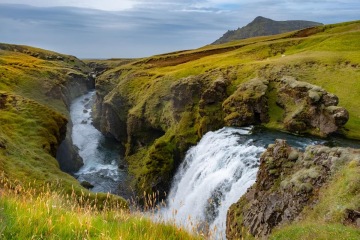 Vrátili jsme se k jižnímu pobřeží a na několik dalších dní naplánovali převážně túry ve zdejší krajině a pár drobných zastávek. Na noc jsme zvolili farmu s výhledem na vodopád Skógafoss na řece Skóga. Voda padá z bývalých pobřežních útesů, které jsou dnes od moře 5 kilometrů. Na parkovišti u restaurace to žije množstvím lidí, kteří zde také hodlají přečkat noc a řada z nich, včetně nás, si zajde do místní vyhlášené restaurace. Vaří zde i své vlastní pivo, tedy čtyři druhy piva a jeden z nich se pyšní přídavkem “českého typu”. Snaha se cení, ale v chuti by to nikdo nepoznal. Zatímco většina lidí skončí u prvního vodopádu nad parkovištěm, tak my se vydáme podél řeky do vnitrozemí a potkáváme další a další vodopády a divoké rokle plné bouřící vody. V podvečer se rozhodneme navštívit ještě rezervaci Dyrhólaey. Leží blízko hlavní silnice číslo 1, podle které se zatím držíme, kousek před městy Vik i Mýrdal. Jedná se o velmi krásné a působivé útesy nad pláží s černým pískem, a hlavně o hnízdiště kouzelného ptáčka jménem Papuchalk severní. Štěstí nám přálo a po trpělivém čekání jsme je na skalních římsách zahlédli, jak nosí rybky do svých hnízd. Neopakovatelný zážitek nás rozradostnil natolik, že po návratu dáme ještě jednou ono české pivo a díky žízni dokonce chutná mnohem lépe než to včerejší.
