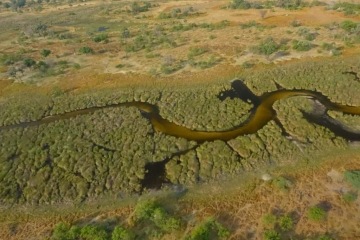 Na jihu delta Okavanga sousedí s největší pouští na jihu Afriky s Kalahari. Pod ní se také ztrácí veškerá voda z této delty a v obrovské hloubce utváří velký rezervoár vody. Tato oblast je obývána kmeny Křováků. Na ně však poslední dobou dopadají nařízení botswanské vlády a přichází tak o přirozený způsob života a svoji domovinu.